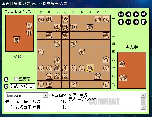 後手 都成竜馬 六段