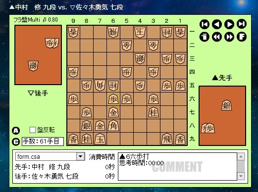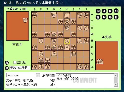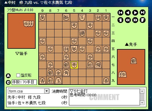 ▲中村 修 九段 vs. ▽佐々木勇気 七段